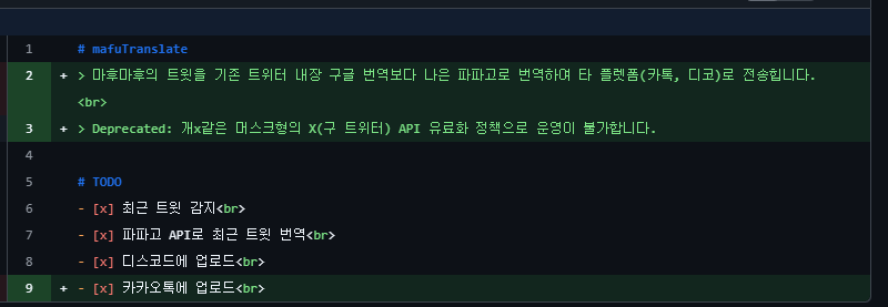 그렇게 혼자 만족하면서 5분 간격 사이에 트윗이 여러 개 올라왔을 때 대응, Kakao i 번역이 마음에 안 들어서 DeepL 번역기로 작동하게 수정 등 여러 가지 수정을 거치면서 문뜩 한 생각이 들었다.